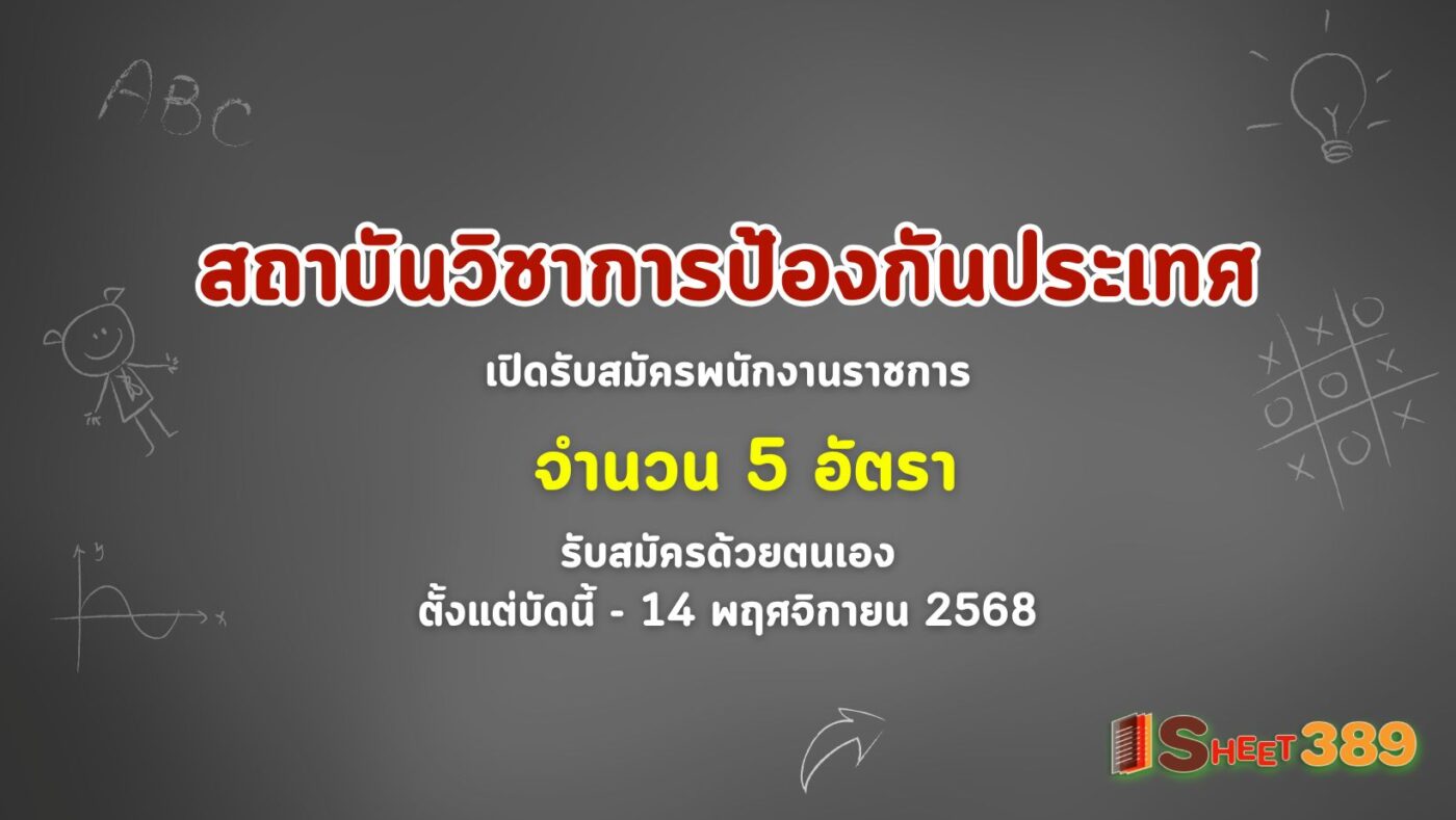 สถาบันวิชาการป้องกันประเทศ เปิดรับสมัครพนักงานราชการ 5 อัตรา รับสมัครด้วยตนเอง ตั้งแต่บัดนี้ – 14 พฤศจิกายน 2568